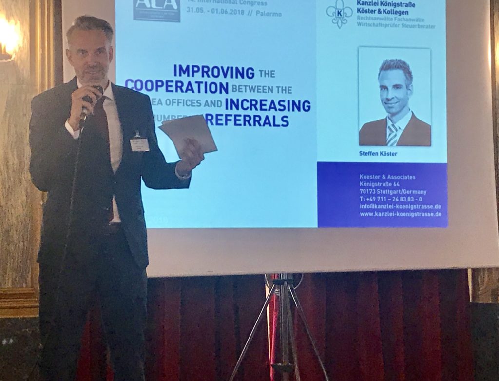 Das Netzwerk wurde 2006 gegründet – und von Beginn an ist Rechtsanwalt Steffen Köster Mitglied im AEA. Er hielt dieses Jahr in Palermo einen Vortrag über die Möglichkeiten, die Zusammenarbeit der Mitgliedskanzleien untereinander weiter zu verbessern. Aufgrund seines hohen persönlichen Engagements wurde Steffen Köster in seinem Amt als Vize-Präsident des AEA für ein weiteres Jahr gewählt.