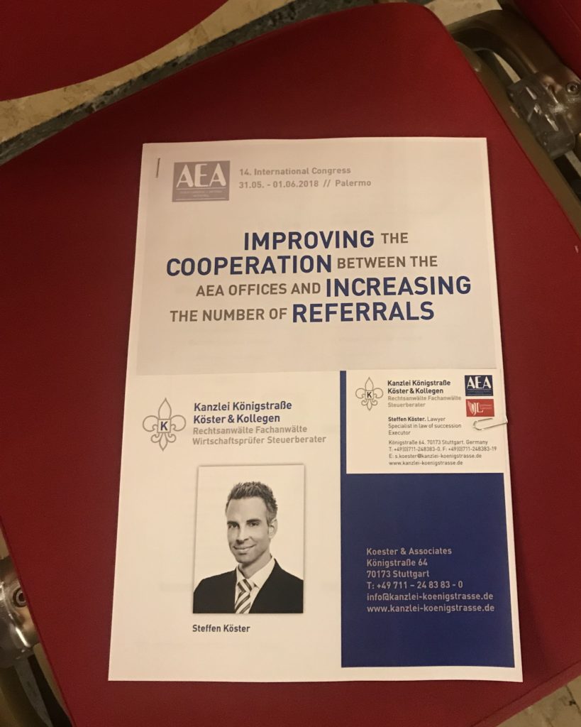 Vom 31.5. – 1.6.2018 fand in Palermo (Italien) der jährliche internationale Kongress des weltgrößten Anwaltsverbands AEA INTERNATIONAL LAWYERS NETWORK statt.